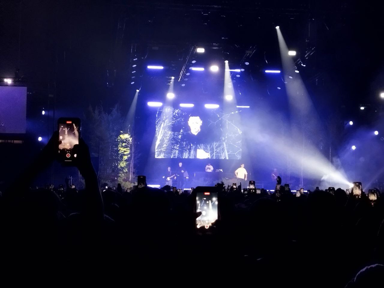 A concert like great productions. There wasn’t a band but the DJ with the backing tracks although in one part of the set he played 72 Hours Post Fight with a real band and in other songs there were guitars and even the sax surrounding his bars .