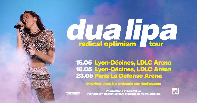 After causing a sensation with two sold-out concerts at the Arènes de Nîmes last summer, the British pop phenomenon Dua Lipa announces its return to France with two dates in Lyon and one in Paris. See you on May 15 and 16 at the LDLC Arena and on the 23rd at the Paris La Défense Arena. Registration for pre-sales is open. General sales are scheduled for September 20.