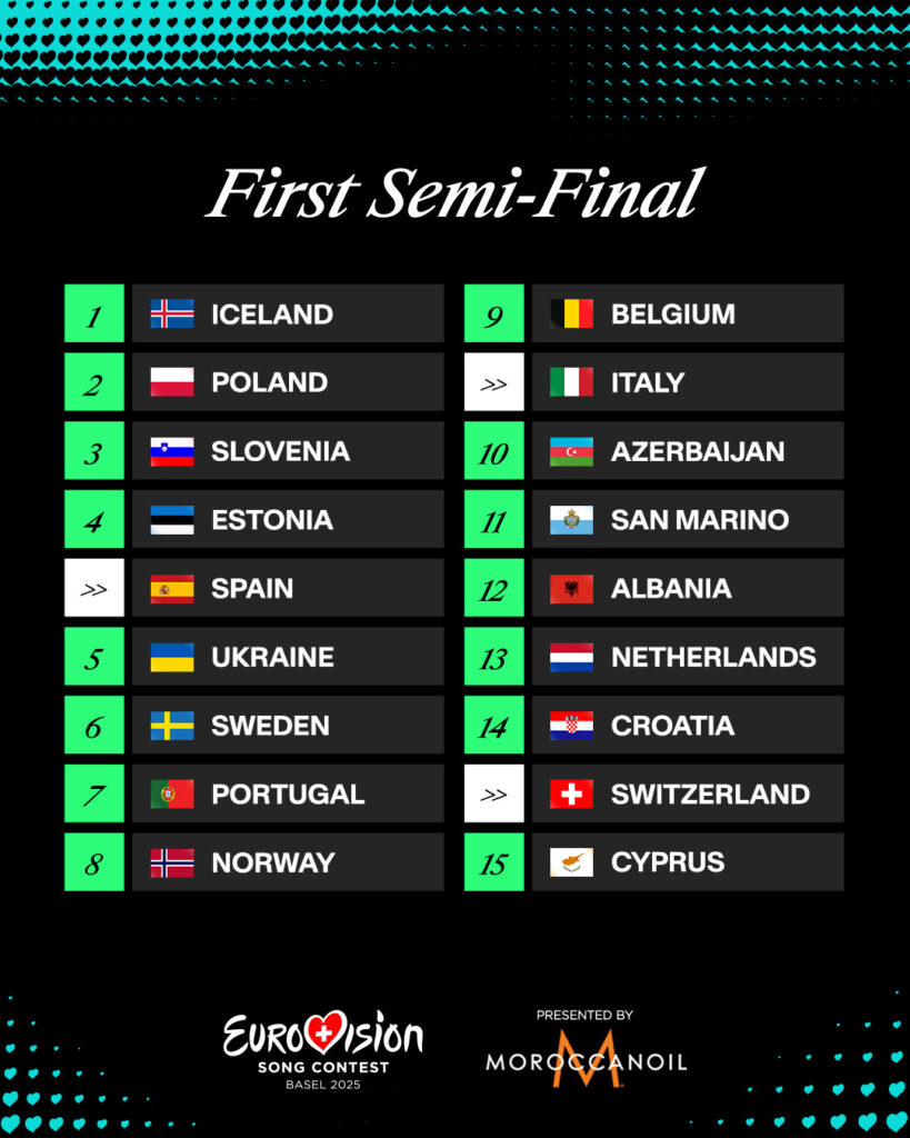 The Eurovision Song Contest 2025 comes alive: the exhibition orders have been announced for the two semi-finals, which will be held in Basel on Tuesday 13 and Thursday 15 May.