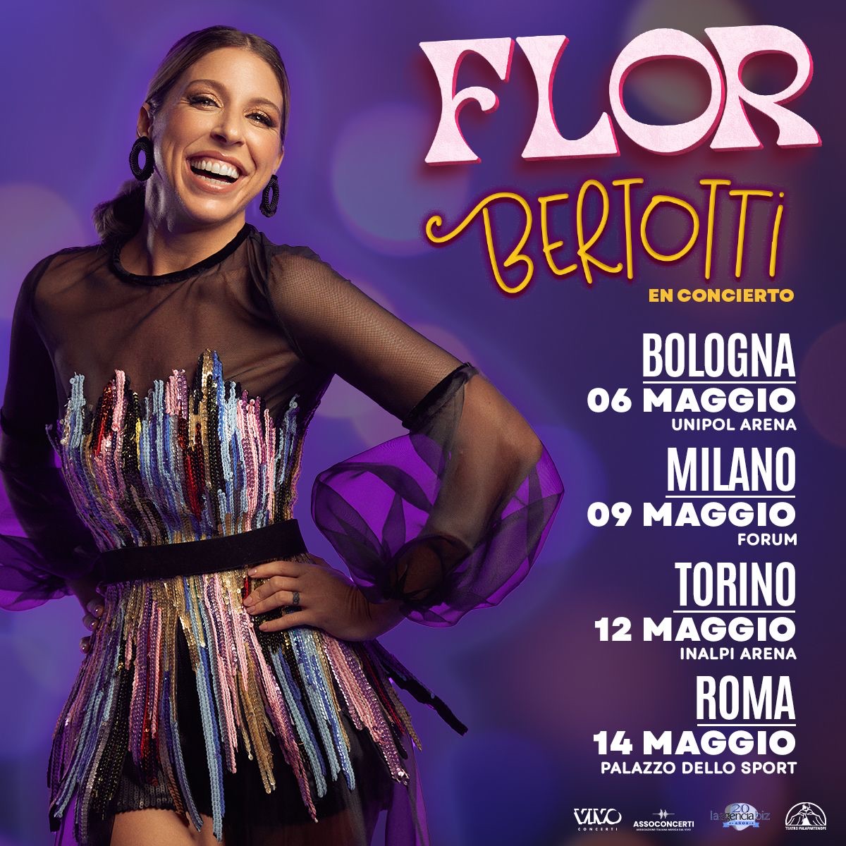 Flor Bertotti en concert will be a journey full of emotions and memorable moments in the main Italian cities, starting from Bologna (6 May at the Unipol Arena), continuing in Milan (9 May at the Forum), Turin (12 May at the Inalpi Arena ) and finally in Rome (14 May at Palazzo Dello Sport).