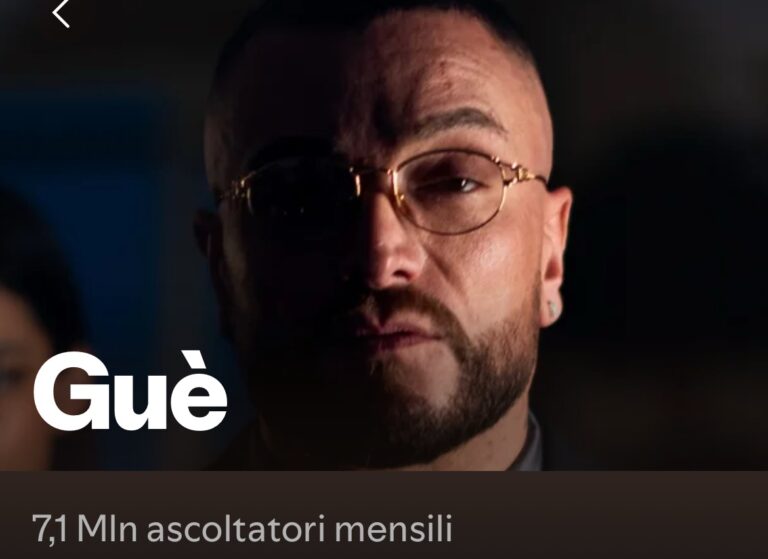 Guè has always been to the top of the rankings of the most listened to artists on Spotify and now the rapper has come to be with the most monthly listeners on the platform. With 7.1 million monthly listeners, Guè climbs Baby Gang, who remains in second place with 6.4 million, and Sfera Ebbasta who ends up in third place with 6.2 million.