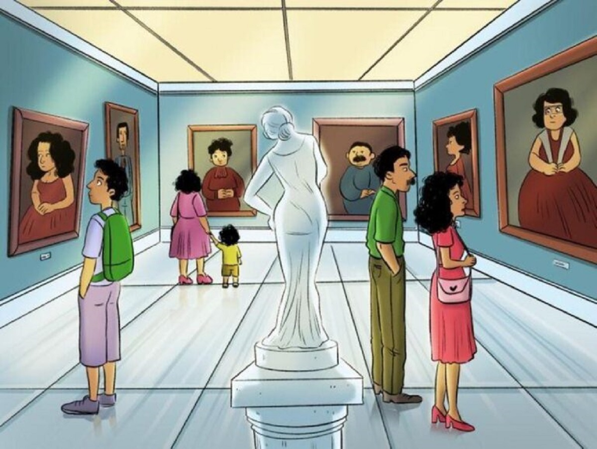 This isn’t just about counting heads. The trick lies in distinguishing between real people and those that are simply representations—whether it’s paintings on the walls or statues standing in the room. When you look at the scene, it’s easy to be tricked into counting what isn’t real, so remember: focus on actual people in the scene, not the artistic renderings or sculptures.