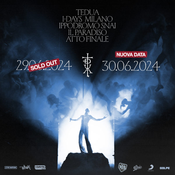 6 months in advance, “Il Paradiso – Atto Finale”, Tedua’s event date at the I-Days, scheduled for June 29, 2024, is already sold out! To celebrate this important result, a second appointment is announced the following day: Sunday 30 June 2024 at the SNAI Hippodrome.