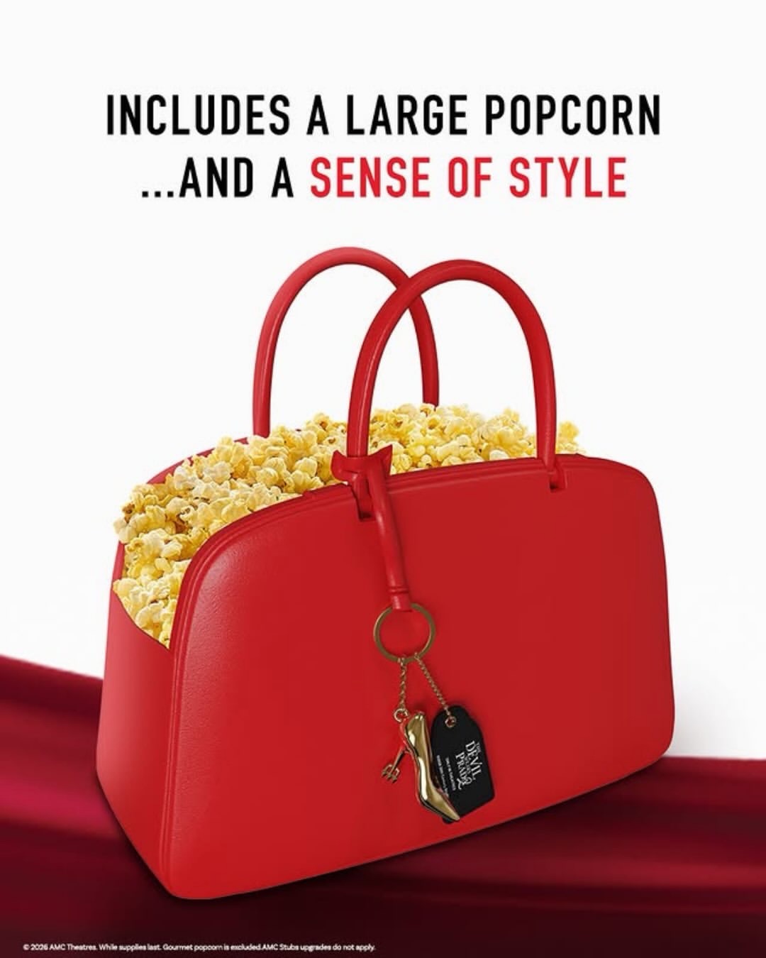 In addition to the trailer, popcorn buckets inspired by the film were also revealed and will go on sale in the US, where the AMC Theaters chain will allow fans to purchase a collectible popcorn bucket that resembles a red bag. The item, already highly coveted by fans of the cult comedy, will be given together with a pair of sunglasses and an issue of Runway Magazine.