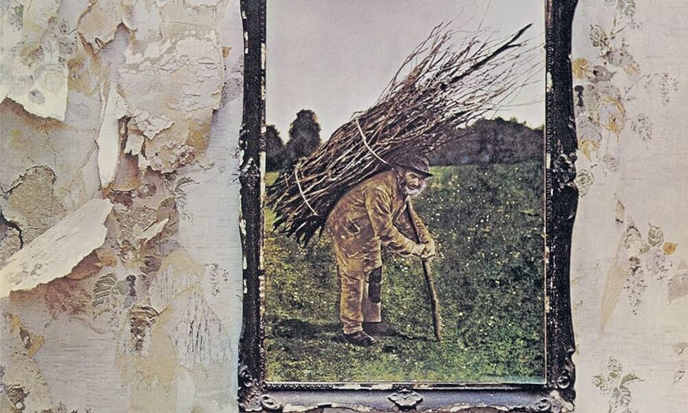 The story goes that singer Robert Plant discovered a photo of the elderly man carrying a bushel of branches on his back in an antique store. This photo was then colorized, framed and placed on the wall of a dilapidated house to create the image that adorns what is now considered one of the greatest albums in rock history.