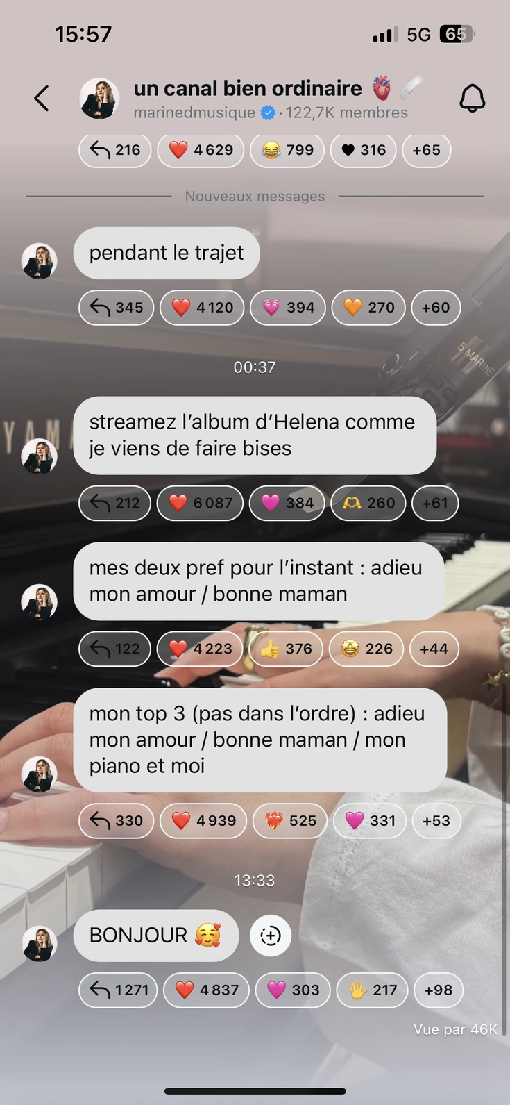 Marine did not stop there and also shared her three favorite songs from the album: “Adieu mon amour”, “good mom” and “my piano and me”. A choice that immediately made his subscribers react with emojis, delighted to discover his favorites.