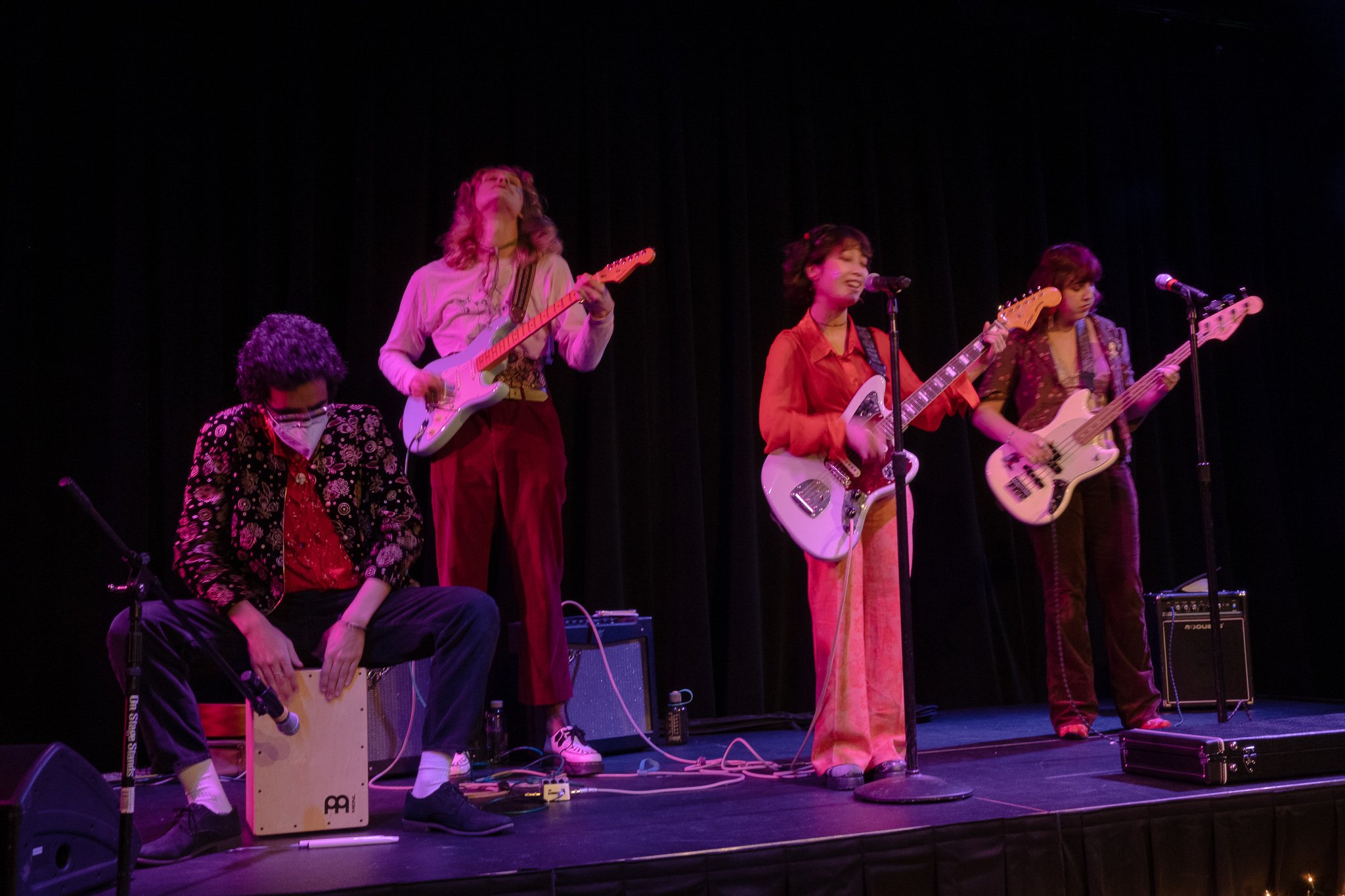 Jo: WECB was the first org that I joined when I came to Emerson. In the fall of my freshman year, I was like ‘I want to be a music journalist!’ and I thought it was gonna be my passion for the rest of my life, and it didn't necessarily turn out that way. But then I discovered that WECB has so many different avenues within the radio. So I expanded a little more, I started hosting my own radio show, called the Cherry Poppers and I did that for like three or four semesters straight. And that was a fantastic experience. I was able to do my show in studio before the pandemic hit. And now Cherry Poppers isn't running but I’m doing ASIA Radio Hour for Asian Students In Alliance. It's great to see the studio back up and running again. And I got to be a part of the managerial team at WECB too last fall as programming director. Being able to see so many different sides of WECB, it's been so special and it's been an honor to be a part of it. It feels very full circle to be able to play at a WECB show that's so big. I remember all of the seniors on Milk Crate my freshman year being so into Sidney Gish and I was like ‘who's this person?’ And the first person I ever interviewed at Emerson, James Ammirato, he was a part of a band named Snoozer, and was friends with Sidney and would rave about her. I wanted to be like the cool senior kids who are music journalists and also musicians who know Sidney Gish and play cool music! And now I’m a senior and I get to open for her, so that’s pretty sick.