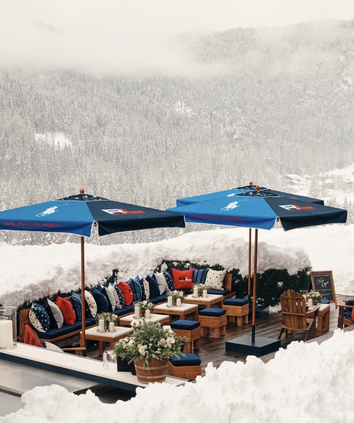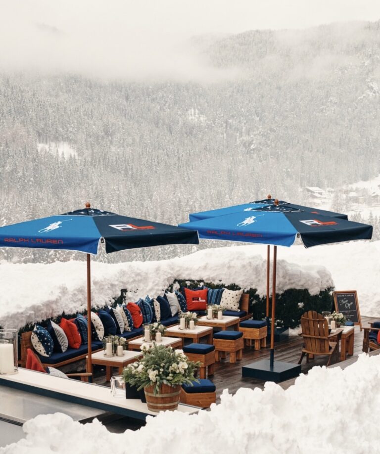 For the 2026 Winter Olympic Games, Ralph Lauren opened an exclusive pop-up in Cortina d'Ampezzo at the Rosapetra Spa Resort, transforming the terrace into an Alpine destination with @TAG accents, curated retail and Ralph's Bar.
