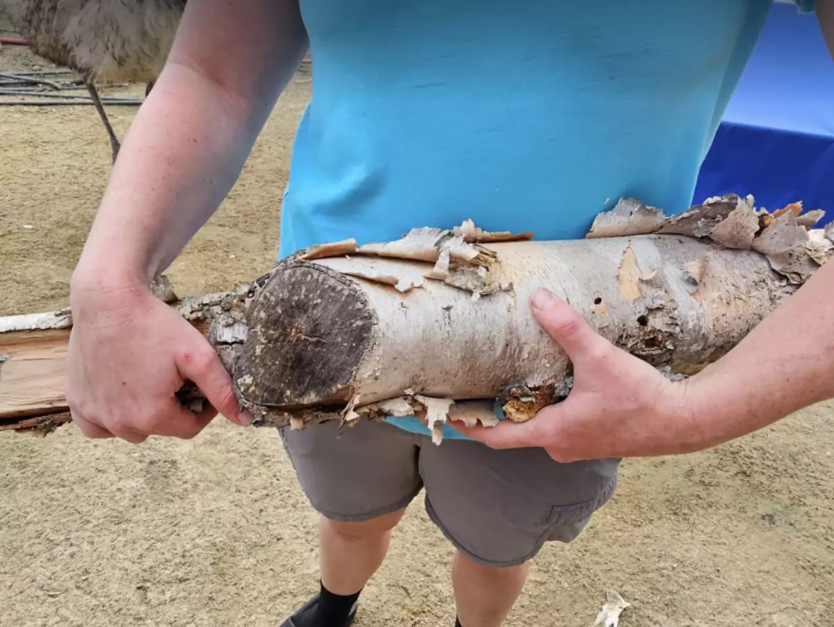 SkyWatch Bird Rescue is no stranger to receiving injured or displaced birds, typically delivered in carriers or small boxes. So when a rough, bark-covered log appeared one morning on their porch, it raised eyebrows. Staff quickly pieced together the story: a local tree-cutting crew had likely noticed something unusual inside the branch and decided to leave it in safe hands.