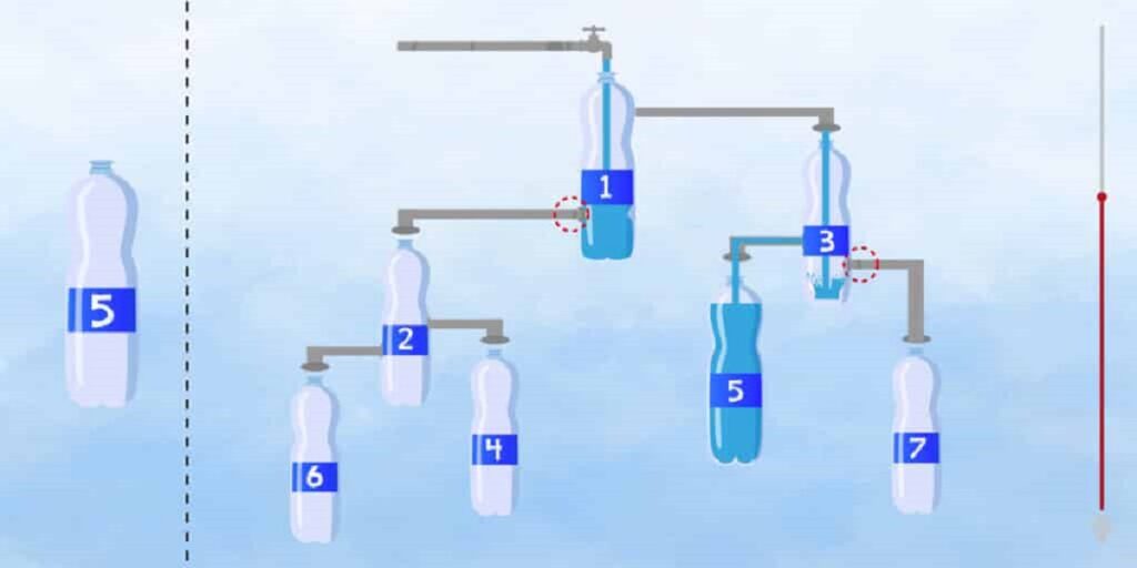 The trick is to focus on the overall flow of water. The first container is designed to maintain a continuous flow, so you’ll need to be alert and follow the pipes carefully. And here’s a little secret—the capacity of each bottle matters too. Be sure to think about how much water each container can hold and how quickly each one is being filled. The answer might not be as obvious as you think, but with the right strategy, you’ll see the solution unfold!