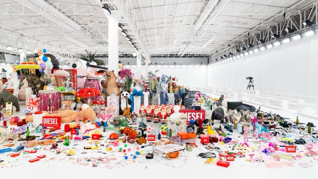 On February 24, Diesel inaugurated the Milan Women's Fashion Week, to do so it brought on stage around 50,000 pieces of Diesel archive memorabilia. Objects already used over the years by the brand in other shows and fashion shows from 1978 to today. The set transformed into an immersive installation, with an abundance of reused objects and props from around 6,000 different categories. Upcycling thus becomes a form of creative expression, which is also reflected in the collection.