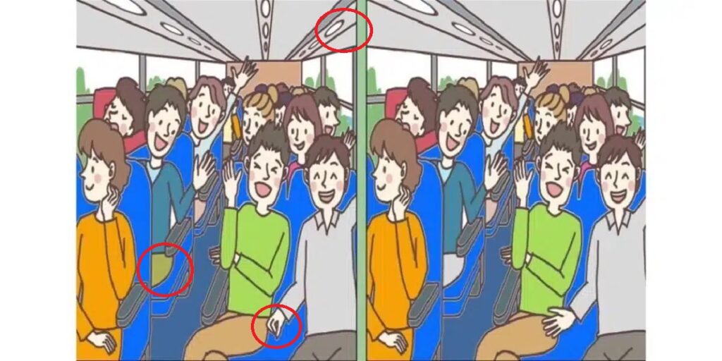 The scene looks simple enough: two almost identical pictures of a busy bus interior. But don’t be fooled. Hidden among the chatter, the handrails and the weary commuters are three subtle differences waiting to be discovered.