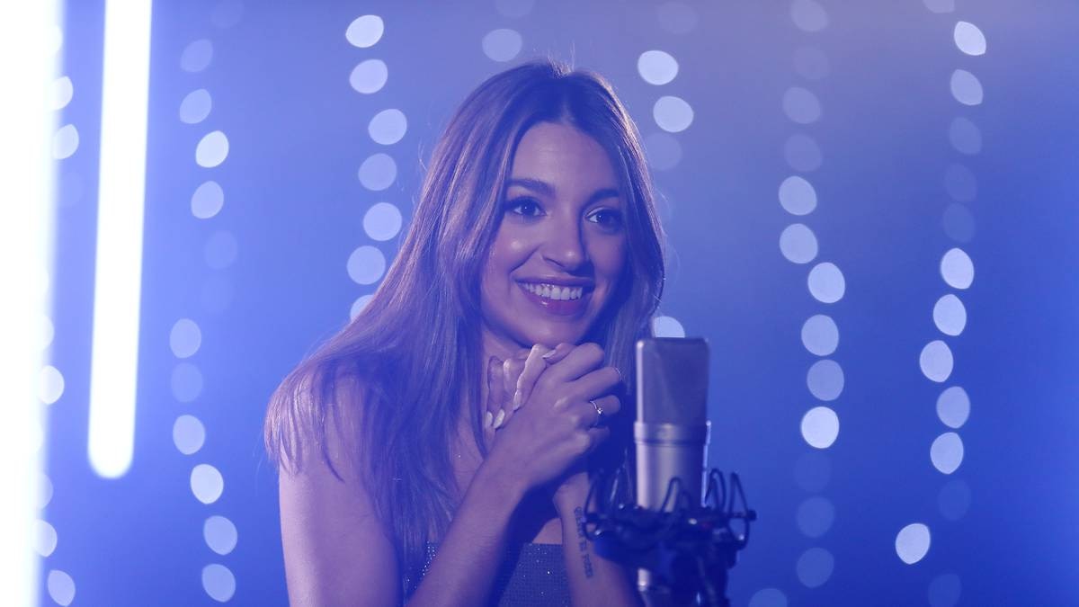 Ana Guerra in the studio recording ‘Mi Deseo, the song from ‘Wish’. / disney